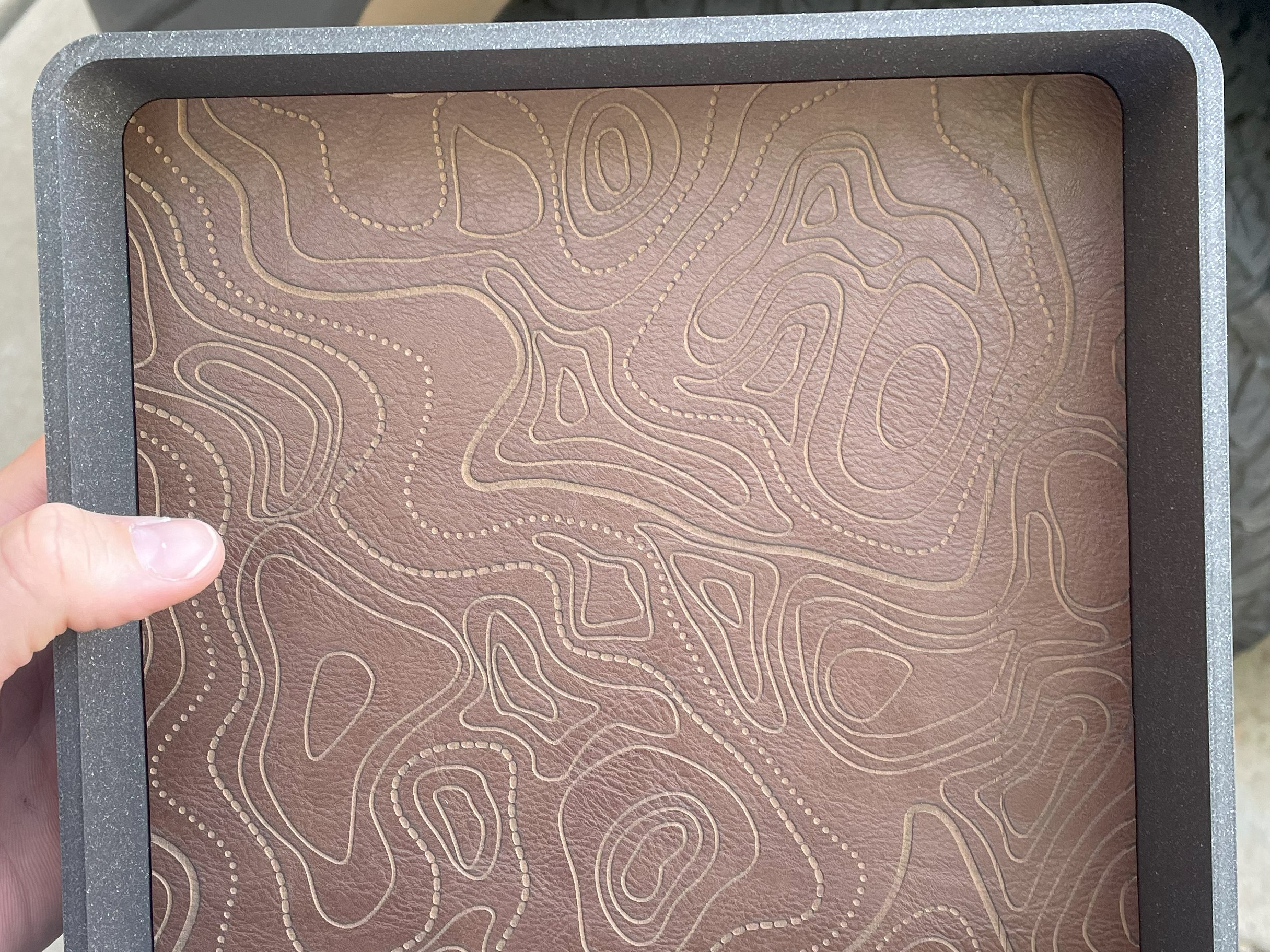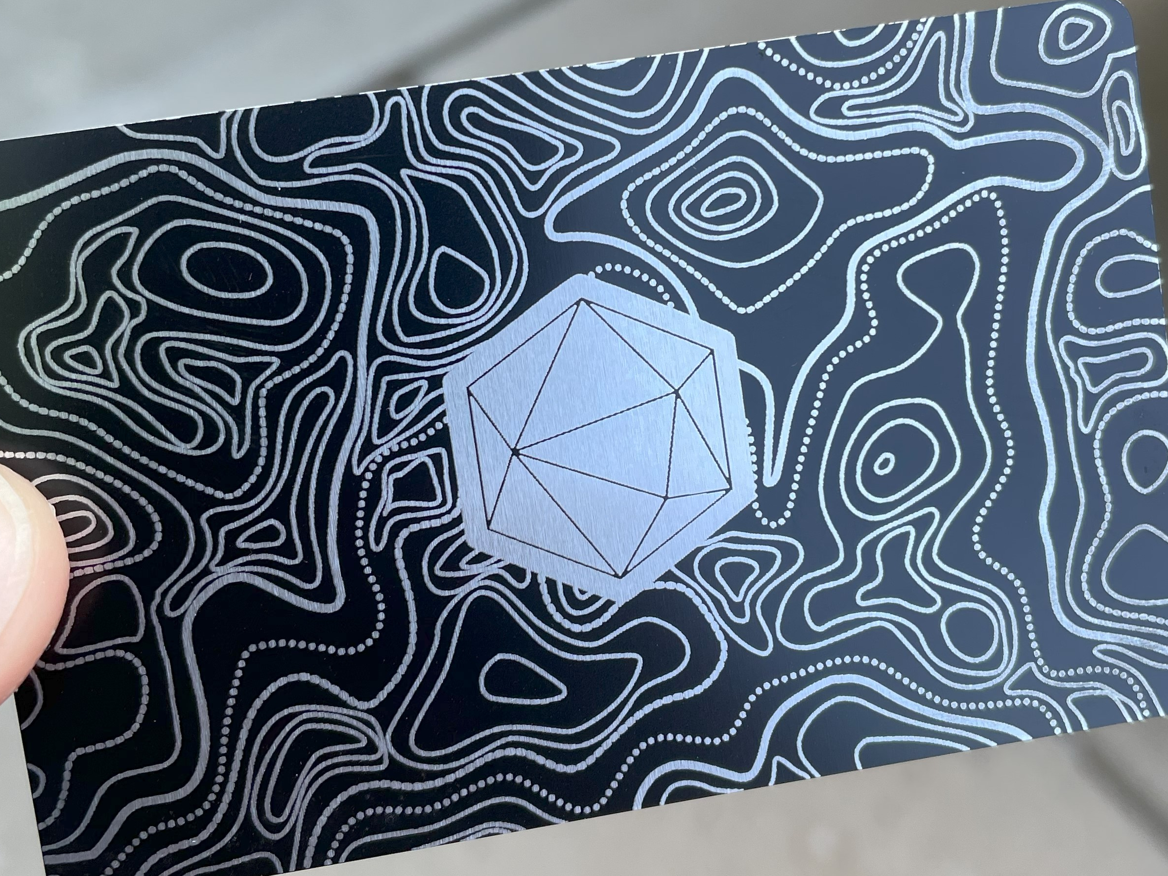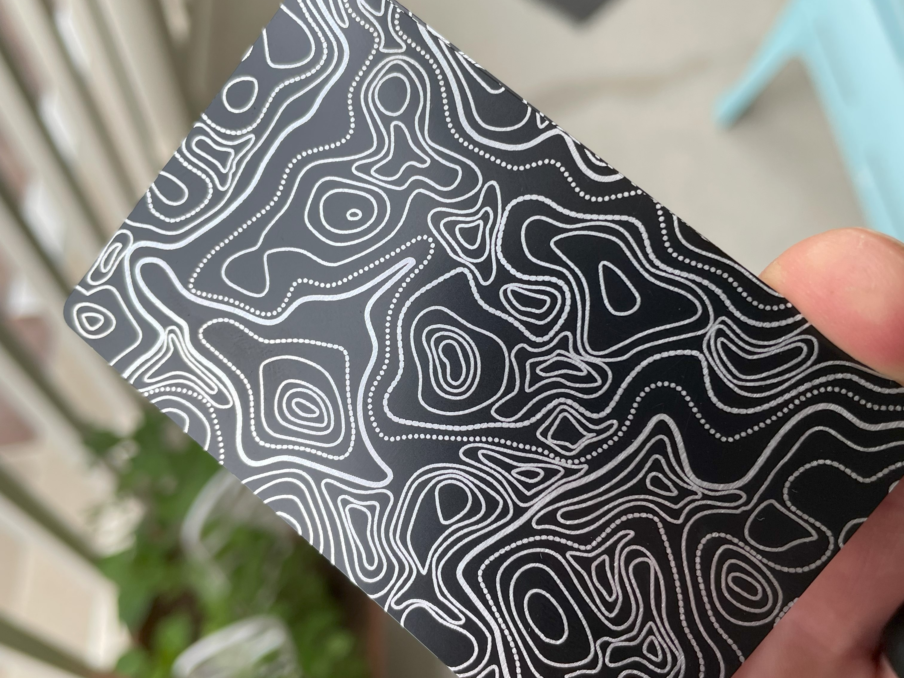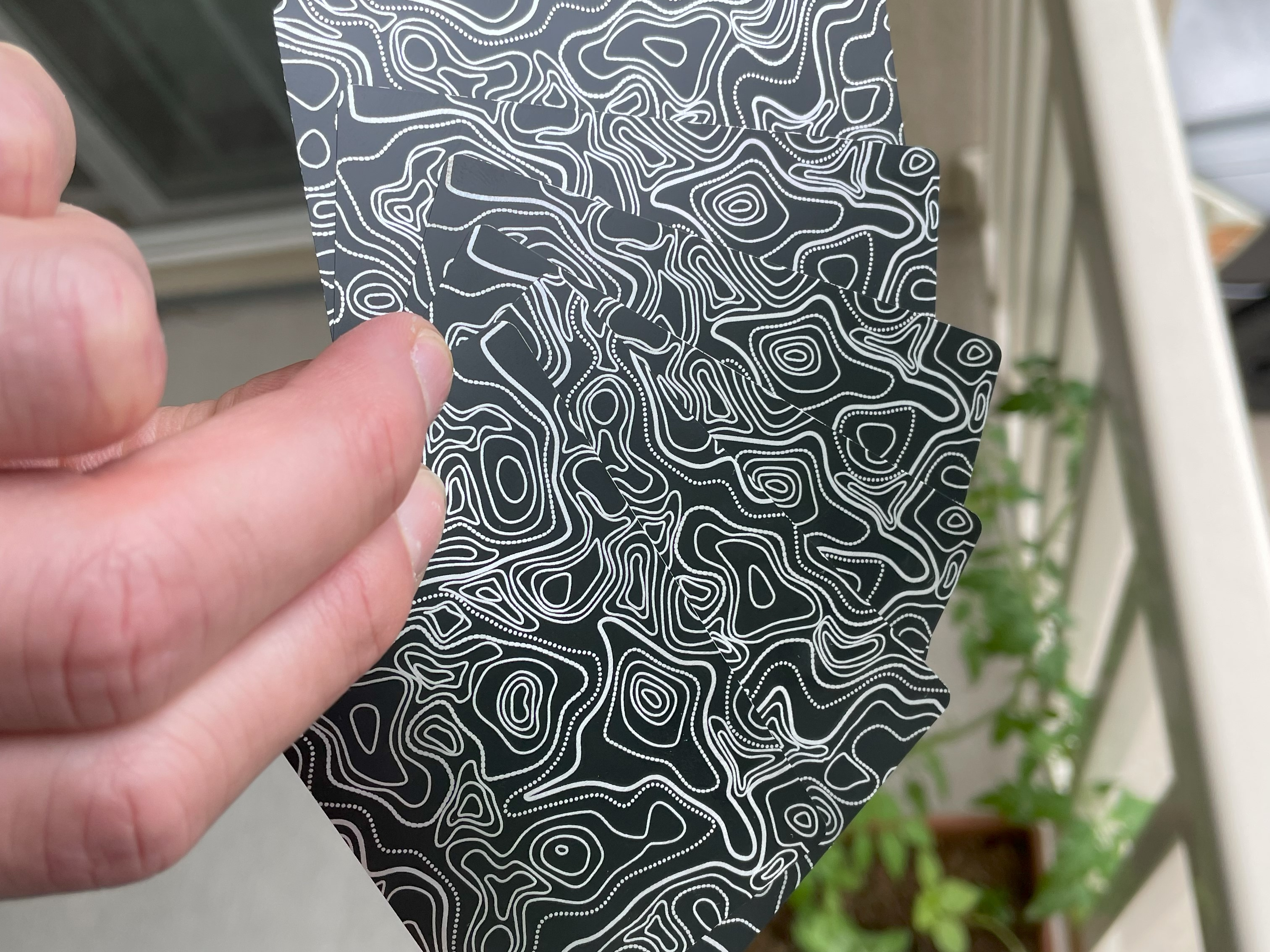 Machined aluminum wallets with an applied laser engraving design I edited using Inkscape to create the .svg (scalable vector graphic) files that were transferred to the wallet bodies using an Xtool D1 20 watt diode laser engraver.